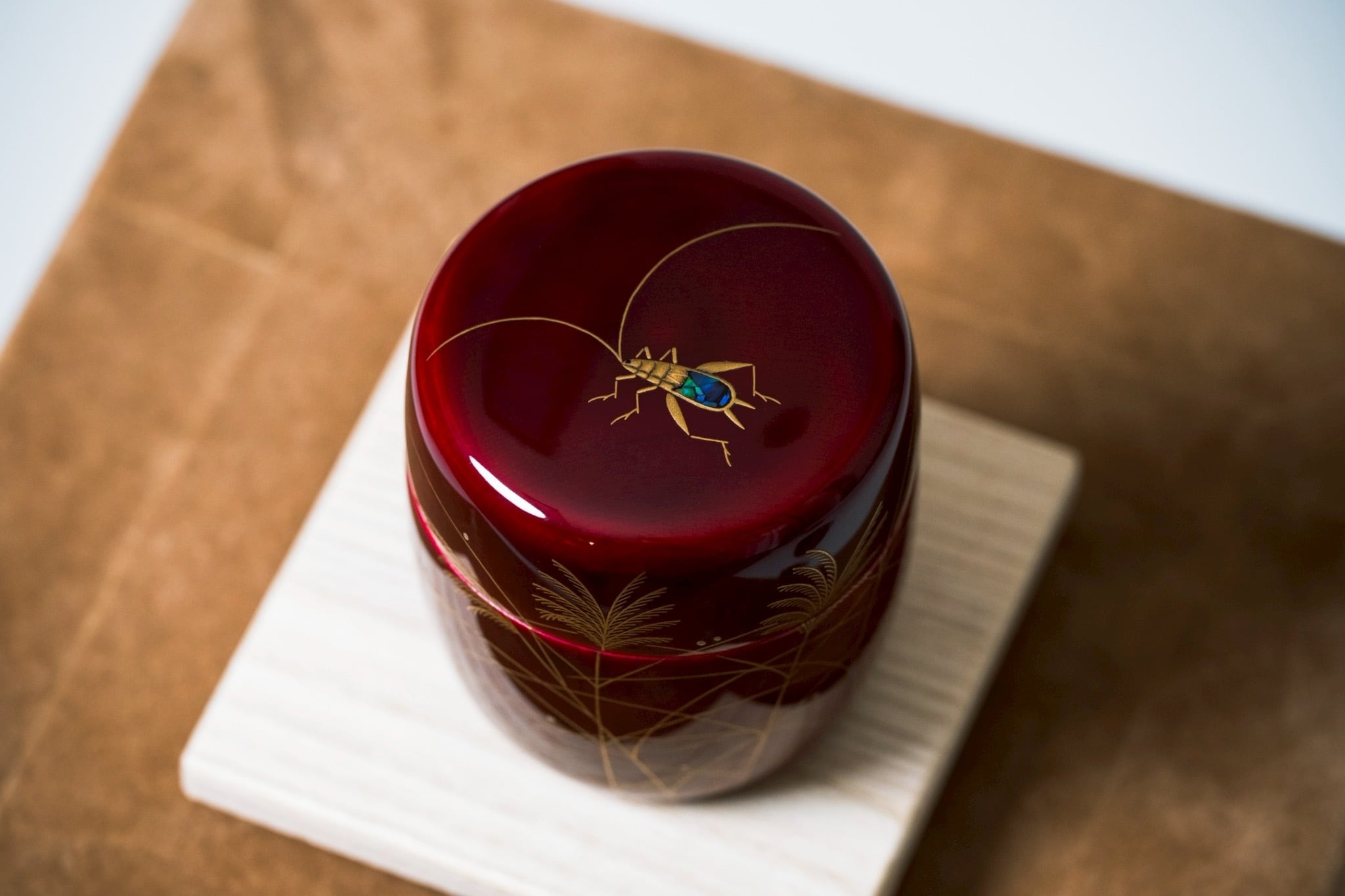 飛騨春慶塗 蒔絵中棗 鈴虫秋草